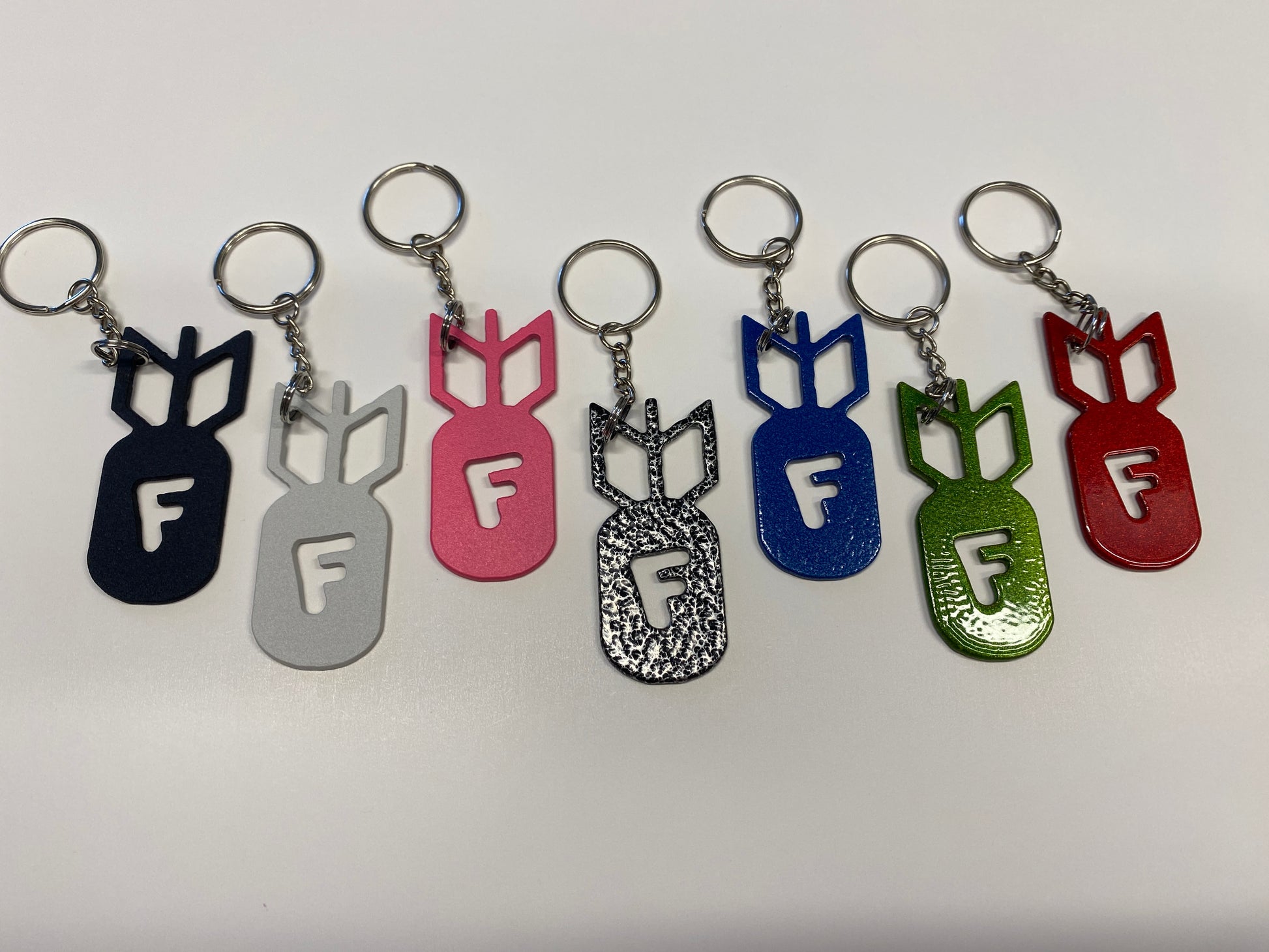 Small in size, measuring in at 2" long; big in laughs. Bring some humor to your everyday life with an F-bomb Keychain! This unique keychain is powder-coated for a stylish finish, and it's sure to draw a few smiles wherever you go. Make a statement with this one-of-a-kind accessory and bring some fun to any outfit!