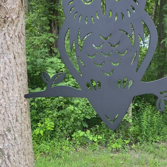 Metal Owl Tree Decor, Powder-coated Steel Owl Silhouette for Yard, Garden & Woodland Decor